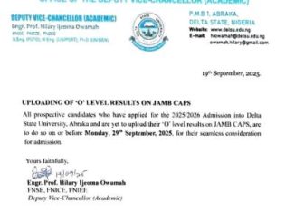 All prospective candidates who have applied for the 2025/2026 Admission into Delta State University. Abraka and are yet to upload their ‘O’ level results on […]
